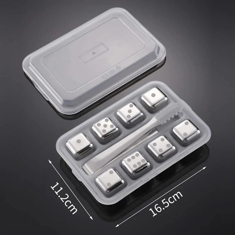 8 Glaçons réutilisables inox en forme de Dés à jouer avec Motifs