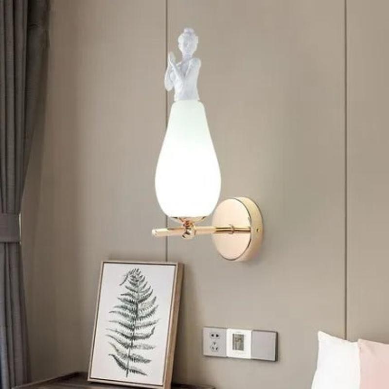 L’Applique Murale Ange combine finesse et élégance pour sublimer votre intérieur. Son support doré et son bras délicatement ouvragé lui confèrent une allure distinguée. L’abat-jour en forme de goutte diffuse une lumière tamisée, idéale pour instaurer une ambiance apaisante. La figurine d’ange blanche qui l’orne apporte une touche spirituelle et raffinée, parfaite pour rehausser l’esthétique d’un salon ou d’une chambre à coucher.