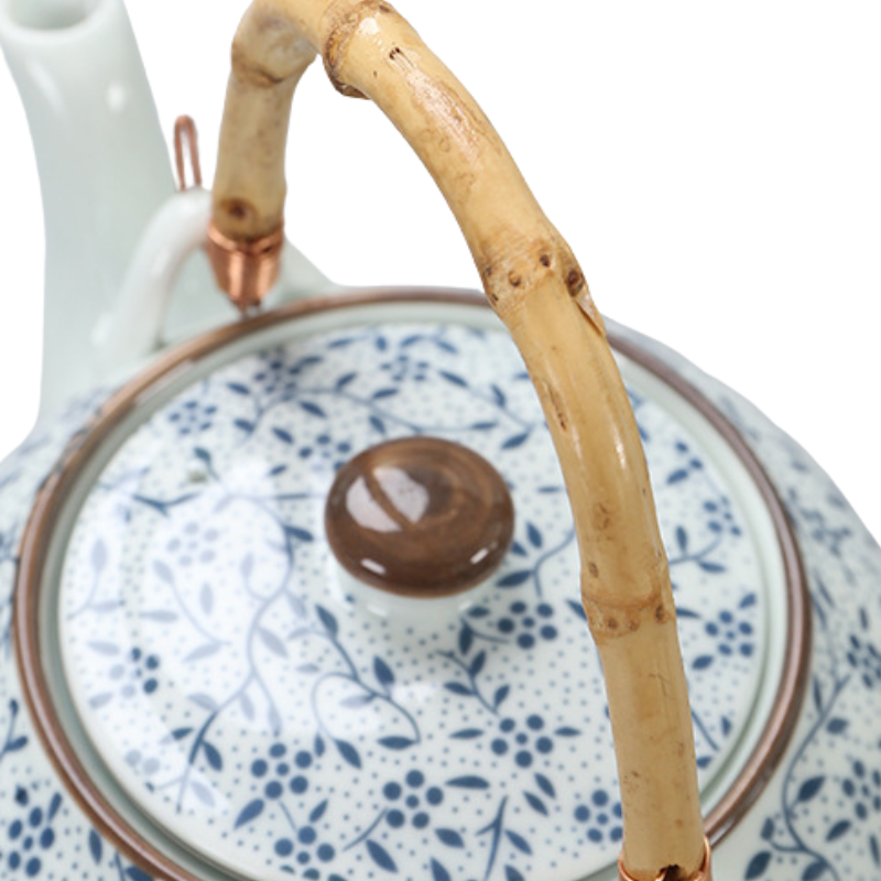 - Motifs nippons : Le corps de la théière est décoré de fleurs, symbole d’élégance asiatique.